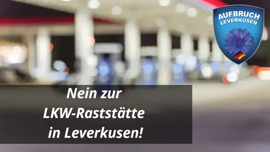 Der Protest der Altparteien gegen die Entscheidung ist nicht sonderlich glaubwürdig. Der Aufbruch Leverkusen erinnert an die Maximalbelastung der Leverkusener Bevölkerung und unserer Natur! Wir wissen selbstverständlich auch um die Notwendigkeit neuer Rastplätze für LKW-Fahrer in Deutschland. Aber Leverkusen kann zusätzliche Belastungen durch noch mehr Verkehr, Lärm und Abgasbelastung nicht mehr verkraften!