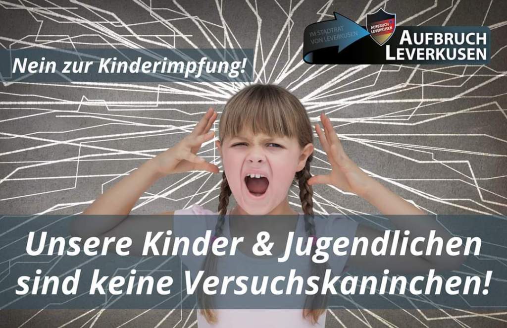 Kinder werden auch in Leverkusen für die Impfkampagne instrumentalisiert, obwohl der Impf-Nutzen für sie selber so gering ist. Daher müssen wir unsere Kinder schützen! Der Impfdruck auf unsere Kinder muss endlich gestoppt werden!