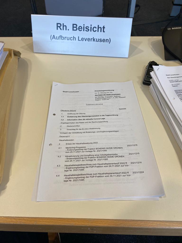 - Der Haushalt wird verabschiedet! Gegenstimmen: Aufbruch Leverkusen, Bürgerliste, Klimaliste und AfD!