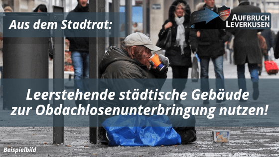 das Problem Obdach- und Wohnungslosigkeit ist ein Thema was auch in Leverkusen immer mehr Menschen betrifft. Verschiedene ehrenamtliche Initiativen leisten in dieser Hinsicht eine hervorragende Arbeit. An erster Stelle ist aber die Stadt gefragt, hier Veränderungen herbeizuführen. Gerade in der kalten Jahreszeit ist Hilfe zwingend notwendig. Folgenden Antrag hat der Aufbruch Leverkusen deshalb in den Stadtrat eingebracht.