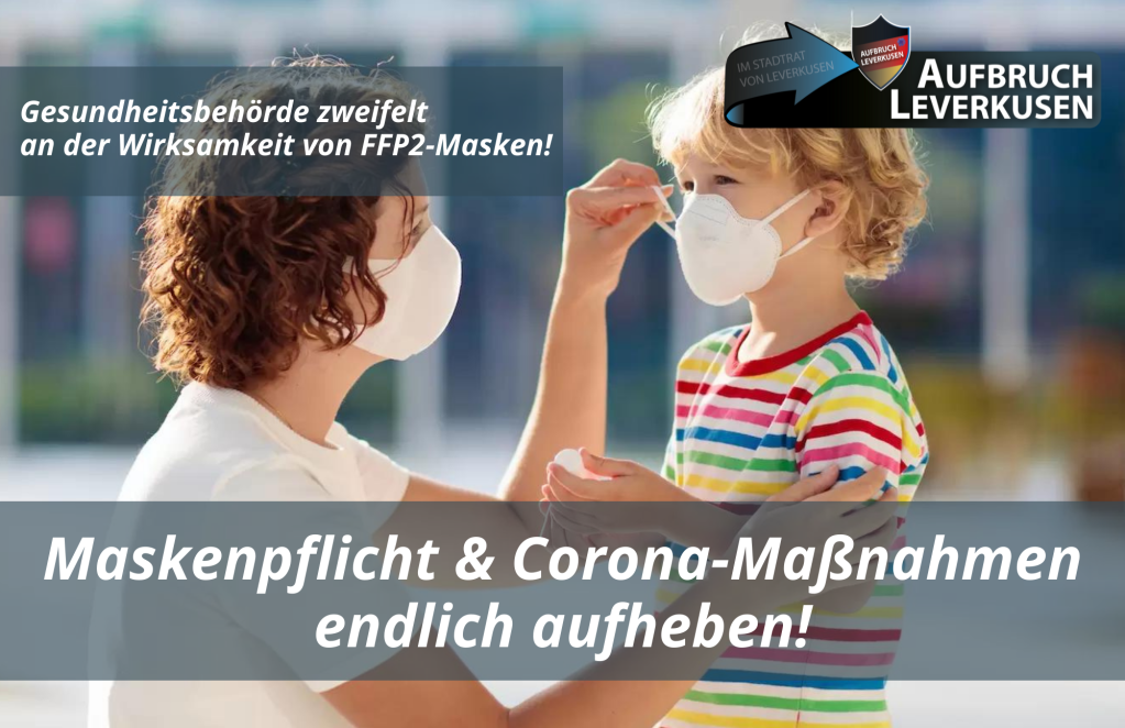 Der Aufbruch Leverkusen kritisiert bereits seit vielen Monaten die überzogene Maskenpflicht. Insbesondere bei der Maskenpflicht im Freien, ging es wohl eher darum die Bürger in unserem Land zu entmündigen, als ihre Gesundheit zu schützen. Hinzu haben sich zahlreiche Politiker und diverse Lobbyisten durch fragwürdige Maskendeals ihre Taschen gefüllt, dies ist wohl auch ein Grund, warum noch immer an der Corona-Fehlpolitik festgehalten wird!
