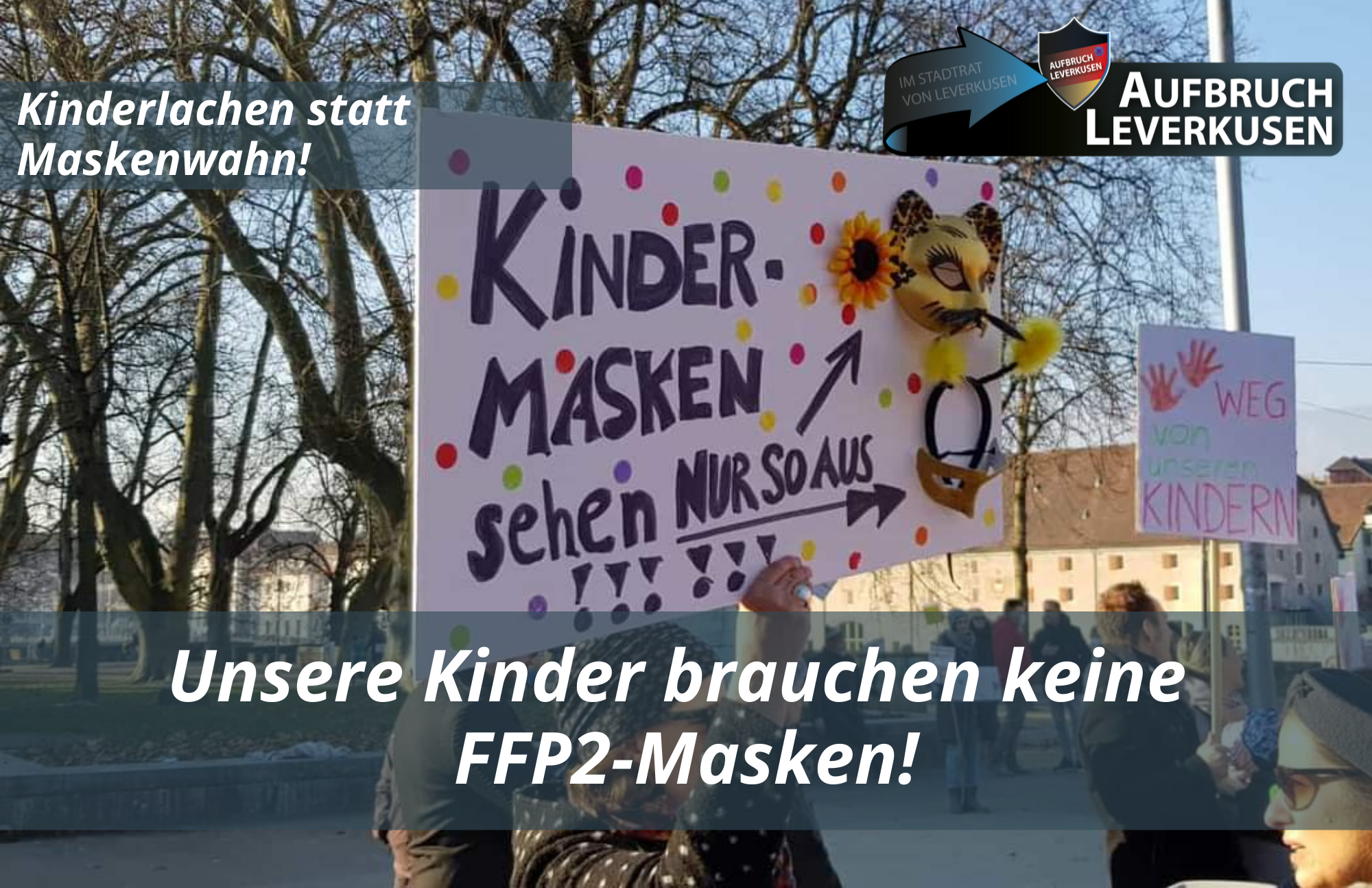 Der Aufbruch Leverkusen sieht dies völlig anders: Was es nach zwei Jahren Psychoterror gegen unsere Kinder vor allem braucht, ist ein abruptes Ende dieses Psychoterrors! Kein Kind und niemand der Kinder betreut, braucht eine FFP2-Maske!