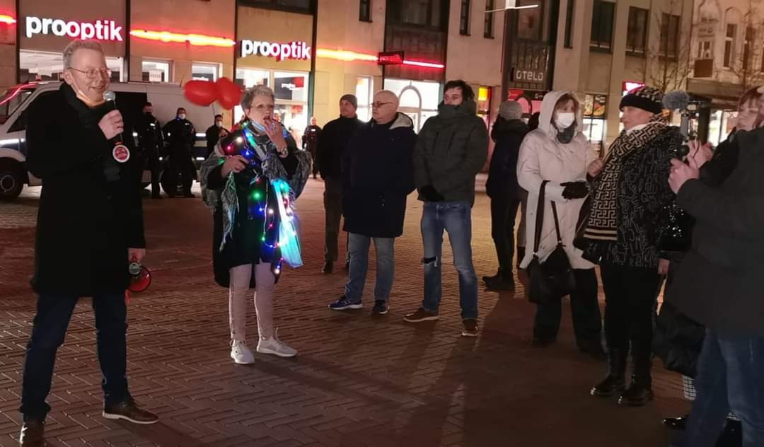 Ebenfalls bekundeten die Teilnehmer lautstarke Solidarität mit Dr.Wollny. Der Opladener Arzt wurde in den letzten Tagen Opfer einen bundesweiten medialen Hetzkampagne. Insbesondere durch die Leverkusener Lokalmedien fand eine regelrechte Vorverurteilung statt. Dem Arzt wird vorgeworfen, er hätte falsche Impfunfähigkeitsbescheinigungen ausgestellt. In einem wirklichen Rechtsstaat, ohne indirekten oder direkten Impfzwang, ohne Stigmatisierung und Ausgrenzung wären solche Atteste im übrigen überhaupt nicht notwendig!