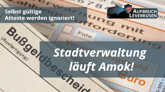 Der Aufbruch Leverkusen rät allen Betroffenen fristgemäß Einspruch gegen die fehlerhaften Bußgeldbescheide zu erheben! Wenn Recht zu Unrecht wird, dann wird Widerstand zur Bürgerpflicht!