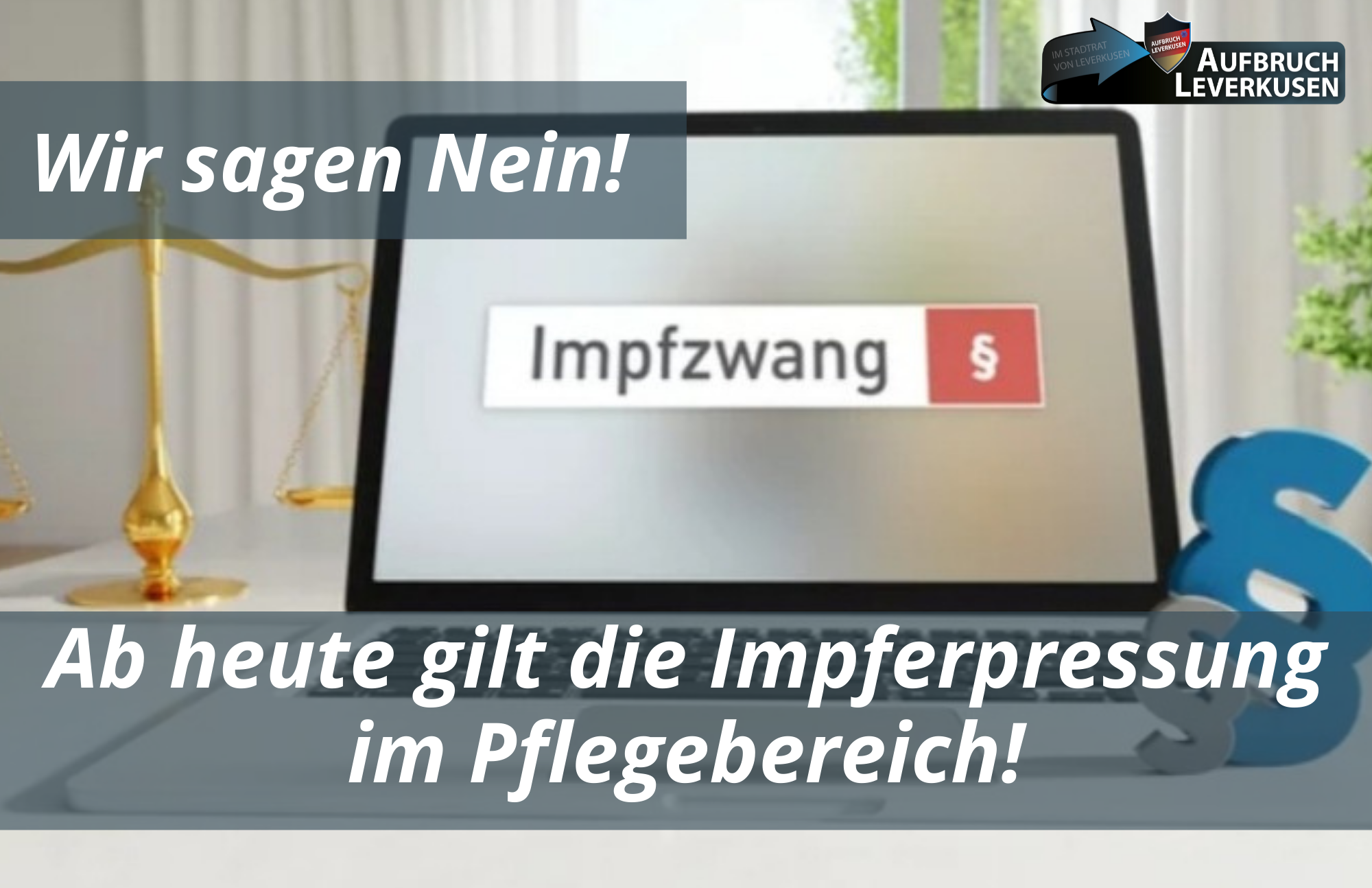Seit dem heutigen Tag gilt die Impfpflicht im Pflege- und Gesundheitswesen, hier kann man getrost von einer Impferpressung sprechen. Beschäftigten in diesem Bereich droht nun die Kündigung und dies trotz jahrelanger Berufserfahrung. Leidtragende dieser Fehlpolitik sind die Pflegebedürftigen. Bei dem Pflegenotstand der in Deutschland und auch in Leverkusen herrscht, können wir es uns nicht leisten, auch nur auf eine Pflegekraft zu verzichten. So eine Politik ist verantwortungslos und gemeingefährlich!