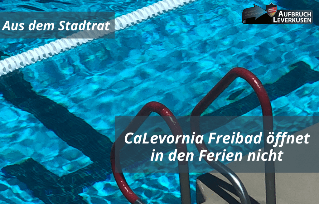 Fast beiläufig wurde den Ratsmitgliedern während der gestrigen Ratssitzung mitgeteilt, dass das beliebte CaLevornia-Bad in diesem Jahr lediglich als Hallenbad betrieben wird, das Freibad bleibt geschlossen.
