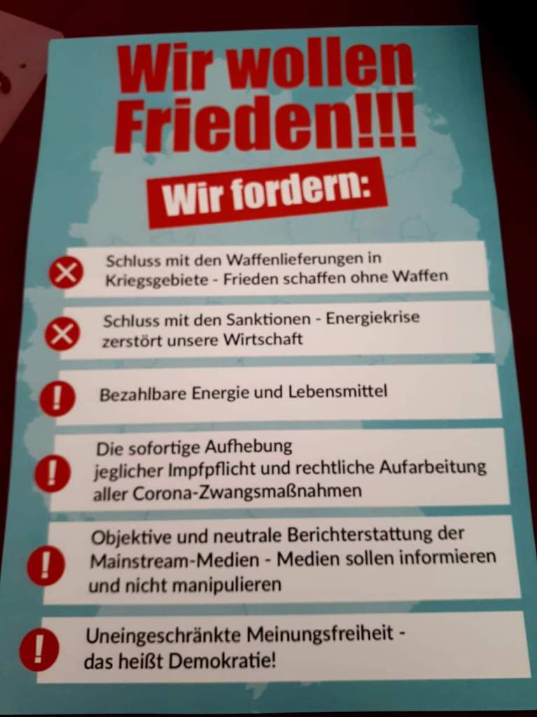 Alle Redner, aus einem breit gefächerten Spektrum waren sich in einem Punkt einig. Die aktuelle Politik der Altparteien mit einer verfehlten Energiewende, irrsinnigen Sanktionen, Waffenlieferungen und Corona-Wahnsinn muß gestoppt werden!
