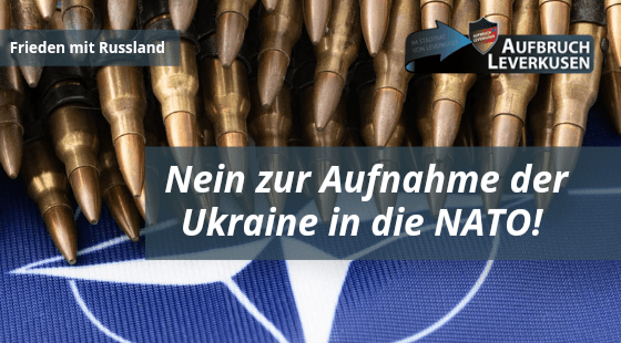 Der Aufbruch Leverkusen positioniert sich klar gegen Waffenlieferungen und gegen die Aufnahme der Ukraine in die NATO.