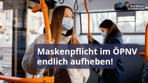 Der Aufbruch Leverkusen fordert, dass auch bei uns in NRW die unsägliche und unverhältnismäßige Maskenpflicht endlich auch im ÖPNV abgeschafft wird.