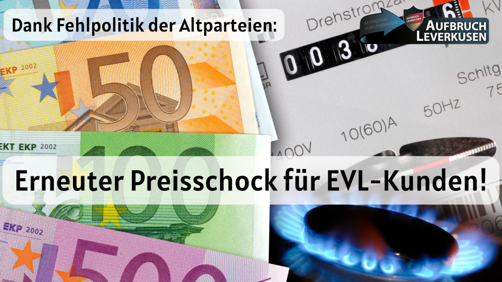 Dabei hatte die EVL schon im Oktober den Abschlag bei Erdgas massiv erhöht! Nun hat sich der Gaspreis der EVL mehr als verdoppelt! Von der angekündigten Gaspreisbremse ist nichts zu spüren. Viele Leverkusener wissen nicht, wie sie die exorbitant hohen Abschläge für Gas und Strom bezahlen können! All dies scheint der EVL-Führung und Ihres fürstlich besoldeten Chefs Eimermacher (CDU) völlig egal zu sein!