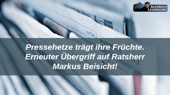 Die Toleranz im Umgang mit dem politischen Gegner ist leider nicht besonders ausgeprägt. Freiheit bleibt die Freiheit des Andersdenkenden! Aber eins sollten die Feinde der Freiheit endlich begriffen haben, dass sich unser Ratsherr Markus Beisicht nicht einschüchtern lässt!! Die Altparteien gehen, der Aufbruch Leverkusen kommt!