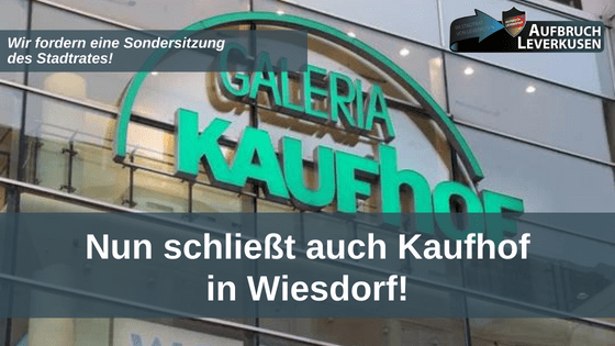 Seit gestern herrscht Gewissheit: Auch die Kaufhof-Filiale in Wiesdorf stellt zum 30. Juni ihren Geschäftsbetrieb ein. Rund 70 Mitarbeiter verlieren ihren Arbeitsplatz . Die Leverkusener Kommunalpolitik schweigt und versucht nun schnell zur Tagesordnung überzugehen. Offenbar scheint es die politische Klasse in der Stadt nicht sonderlich zu stören, dass Wiesdorf nun eine leerstehende Betonwüste am Ende der Fußgängerzone erhält!