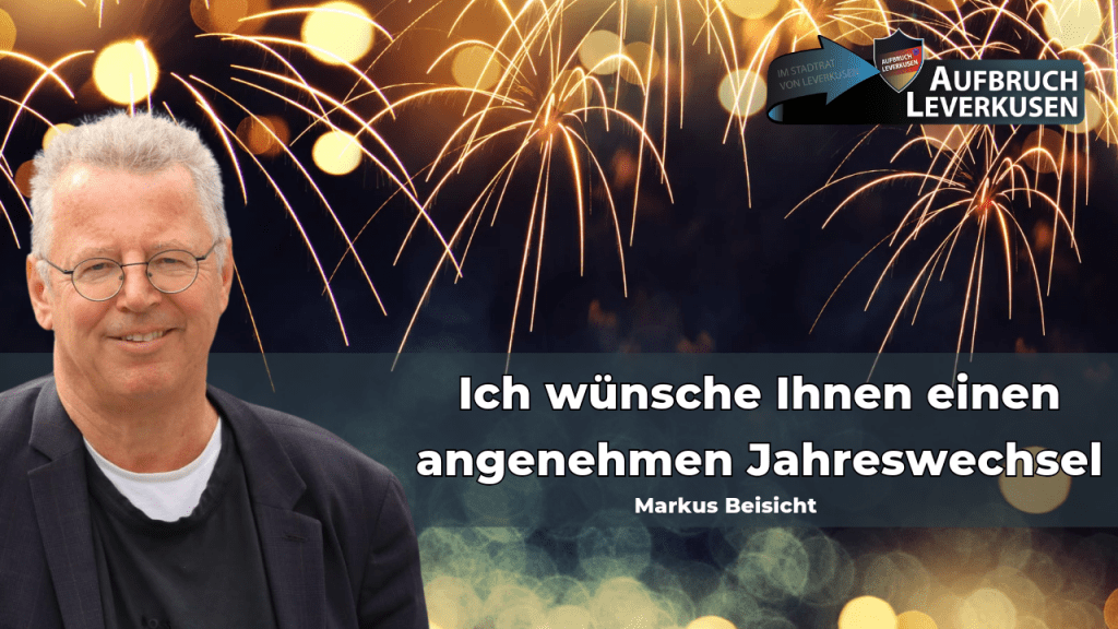 Wir wünschen einen friedlichen Jahreswechsel. Verfasst vonAufbruch Leverkusen31. Dezember 2023Veröffentlicht inAllgemein Hiermit wünsche ich Ihnen einen friedlichen und angenehmen Jahreswechsel. Herzliche Grüße Markus Beisicht Teilen mit: Klicke, um auf X zu teilen (Wird in neuem Fenster geöffnet) X Mehr Klick, um auf Facebook zu teilen (Wird in neuem Fenster geöffnet) Facebook Gefällt mir Wird geladen … Ähnliche Beiträge
