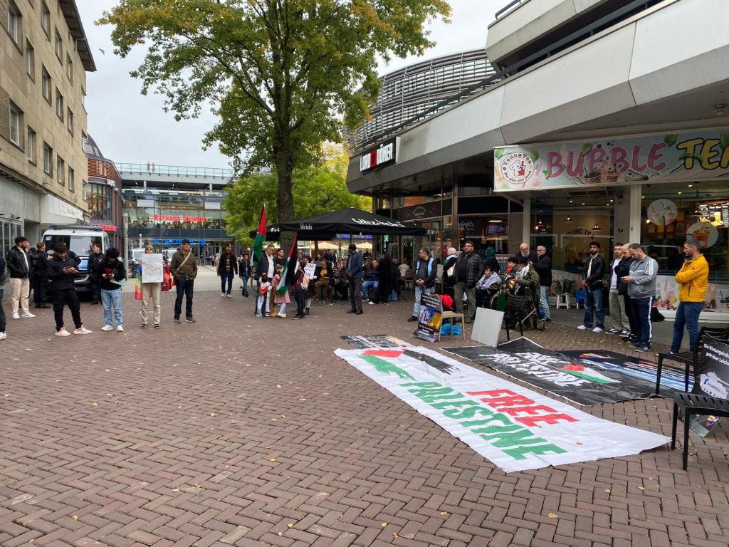 Die Redner forderten eine gleichberechtigte Friedenslösung für den Nahen Osten und einen Stopp der Waffenlieferungen an das Regime von Benjamin Netanjahu. Zudem warfen sie in ihren Redebeiträgen einen Rückblick auf jahrzehntelange Besatzung, Apartheid und Vertreibung, eine Politik die letztendlich zur Eskalation am 7.10.2024 führte.