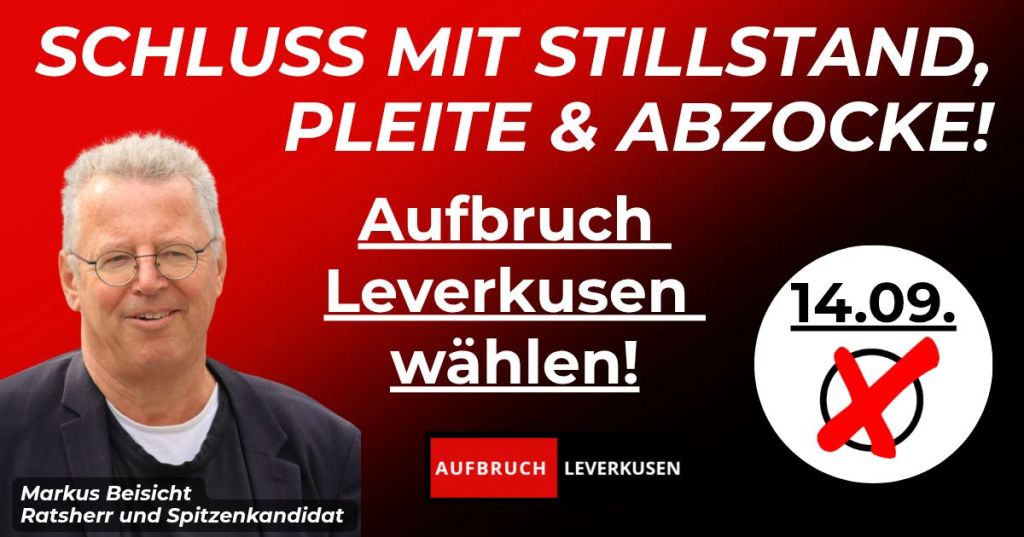 Leverkusen braucht eine lokale und breit aufgestellte Opposition gegen die verbrauchten Rathausparteien und deren Vetternwirtschaft sowie deren hemmungslose Bürgerabzocke. Gleichzeitig braucht Leverkusen eine wirkliche lokal ausgerichtete Friedensbewegung gegen ein atomares Inferno in Mitteleuropa , gegen die hemmungslose Aufrüstung , gegen die NATO-Kriegspropaganda und gegen den Genozid in Gaza!