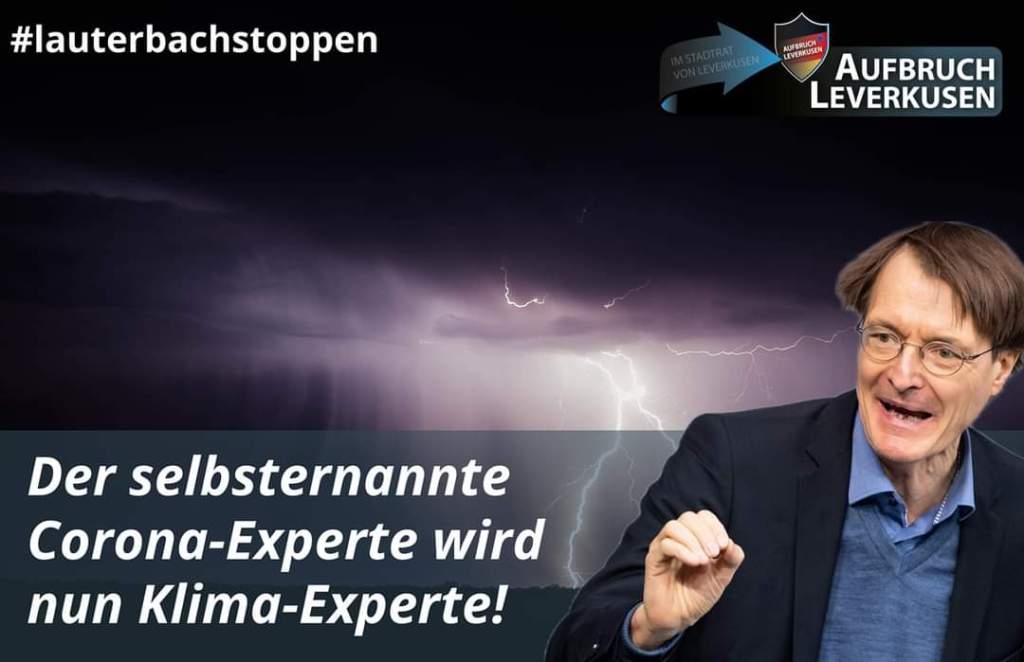 Fast schon war es ruhig um den selbsternannten Gesundheitsexperten der einstigen Arbeiterpartei SPD Karl Lauterbach geworden. Nach der Flutkatastrophe meldet sich Lauterbach nun als Klimaexperte zu Wort. Wie andere Vertreter der Altparteien macht er den sogenannten Klimawandel für die aktuelle Katastrophe verantwortlich. Erst kürzlich sprach Lauterbach sogar von einem notwendigen Klima-Lockdown. Der SPD-Bundestagsabgeordnete macht also das, was er wohl am besten kann. Panik schüren und die Menschen im Land mit neuen Maßnahmen gängeln. Auf zusätzliche finanzielle Belastungen und Verbote, können sich die Menschen in diesem Land schon jetzt einstellen, wenn Lauterbach tatsächlich der zukünftigen Bundesregierung angehören sollte. Dass das wichtige Thema „Umwelt- und Naturschutz“ lediglich als Vorwand für derartige Maßnahmen herhalten muss, sollte jedem klar denkenden Menschen bewusst sein.
