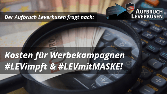 Aktuell sind erwähnte Werbekampagnen überall in Leverkusen deutlich sichtbar. Der Aufbruch Leverkusen sieht diese Kampagne mehr als kritisch. Über den Maskenzwang, beziehungsweise über die Impfthematik, werden die Menschen bereits jetzt umfassend informiert. Eine zusätzliche Werbekampagne, betrachten wir als Steuergeldverschwendung. Das Ergebnis unserer Anfrage werden wir selbstverständlich veröffentlichen.