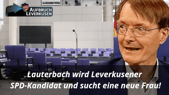 In anderen Printmedien konnte man lesen, das Karl Lauterbach auf der Suche nach einer neuen Liebe ist. Der Aufbruch Leverkusen wünscht von Herzen, dass ihm dieses Vorhaben gelingt. Ein Rückzug ins Privatleben, wäre für Leverkusen und die Menschen in Deutschland sicherlich kein Nachteil.